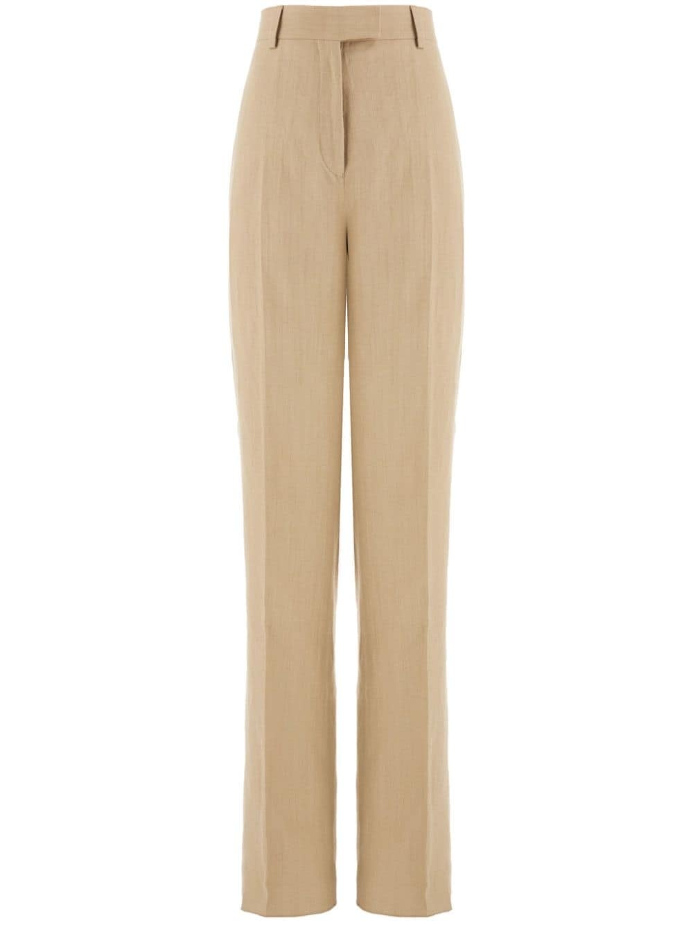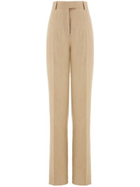 tailored high-waisted trousers Highlights - Sand beige - Tailored cut - High-waisted - Belt loops - Concealed front fastening - Rear welt pocket - Straight leg Made in Italy Composition Outer: Viscose 54%, Linen/Flax 46% Lining: Cotton 100%