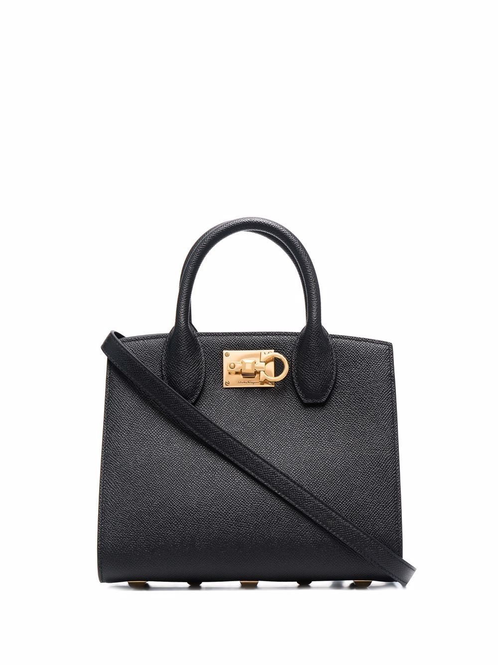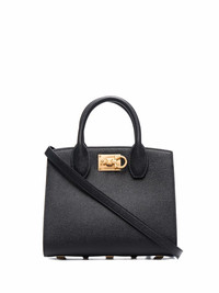 The Studio tote bag Inspired by the iron gates of the Palazzo Spini Feroni, the Gancini has become Ferragamo’s most iconic motifs. Seen here in the shape of a gold-hued fastening, the symbol adds an unmistakable look to this Studio tote bag. Made in Italy Composition Outer: Calf Leather 100% SIZE & FIT Model measurements Height 5 ft 9 in(1.75 m) Bust/Chest 31.49 in(80 cm) Hips 34.64 in(88 cm) Waist 24.01 in(61 cm) Measurement DEPTH 4.52 in(11.5 cm) HEIGHT 7.48 in(19 cm) WIDTH 8.66 in(22 cm)