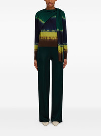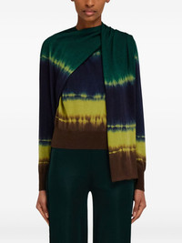 tie-dye print pullover Highlights - Moss green/navy blue/yellow - Attached scarf - Tie-dye pattern - Long sleeves - Straight hem Made in Italy Composition Virgin Wool 100% Washing instructions Read Manufacturer Guidelines