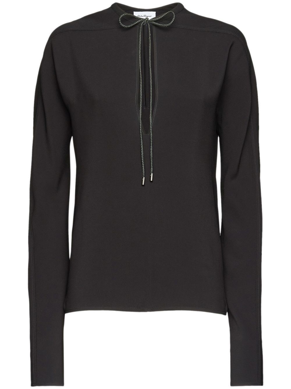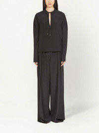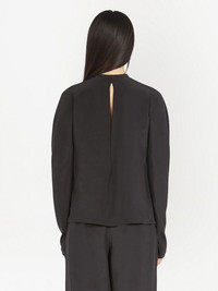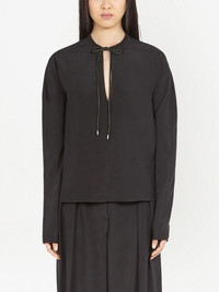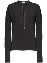 tie-neck long-sleeve blouse black calf leather gathered tie neck round neck long sleeves straight hem Made in Italy Composition Outer: Rayon 100% Washing instructions Read Manufacturer Guidelines