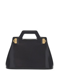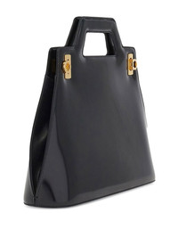 top-handle leather tote bag jet black calf leather Gancini flip-lock fastening cut-out top handles main compartment gold-tone hardware Made in Italy Composition Outer: CALFSKIN 100% Lining: Lambskin 100% SIZE & FIT Measurement DEPTH 3.93 in(10 cm) HEIGHT 11.41 in(29 cm) WIDTH 13.77 in(35 cm) HANDLE 2.55 in(6.5 cm) STRAP 19.68 in(50 cm)
