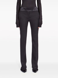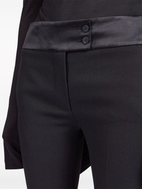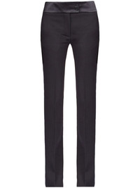 Tuxedo straight-leg tailored trousers Highlights - Black - Virgin wool - Satin trim - Pressed crease - Mid-rise - Straight leg - Concealed front fastening - Off-centre front button fastening - Two side slit pockets - Rear welt pocket Made in Italy Composition Outer: Virgin Wool 100% SIZE & FIT Measurement FRONT RISE 10.51 in(26.7 cm) INSIDE LEG 35 in(88.9 cm) HIPS 34.01 in(86.4 cm) WAIST 30 in(76.2 cm)