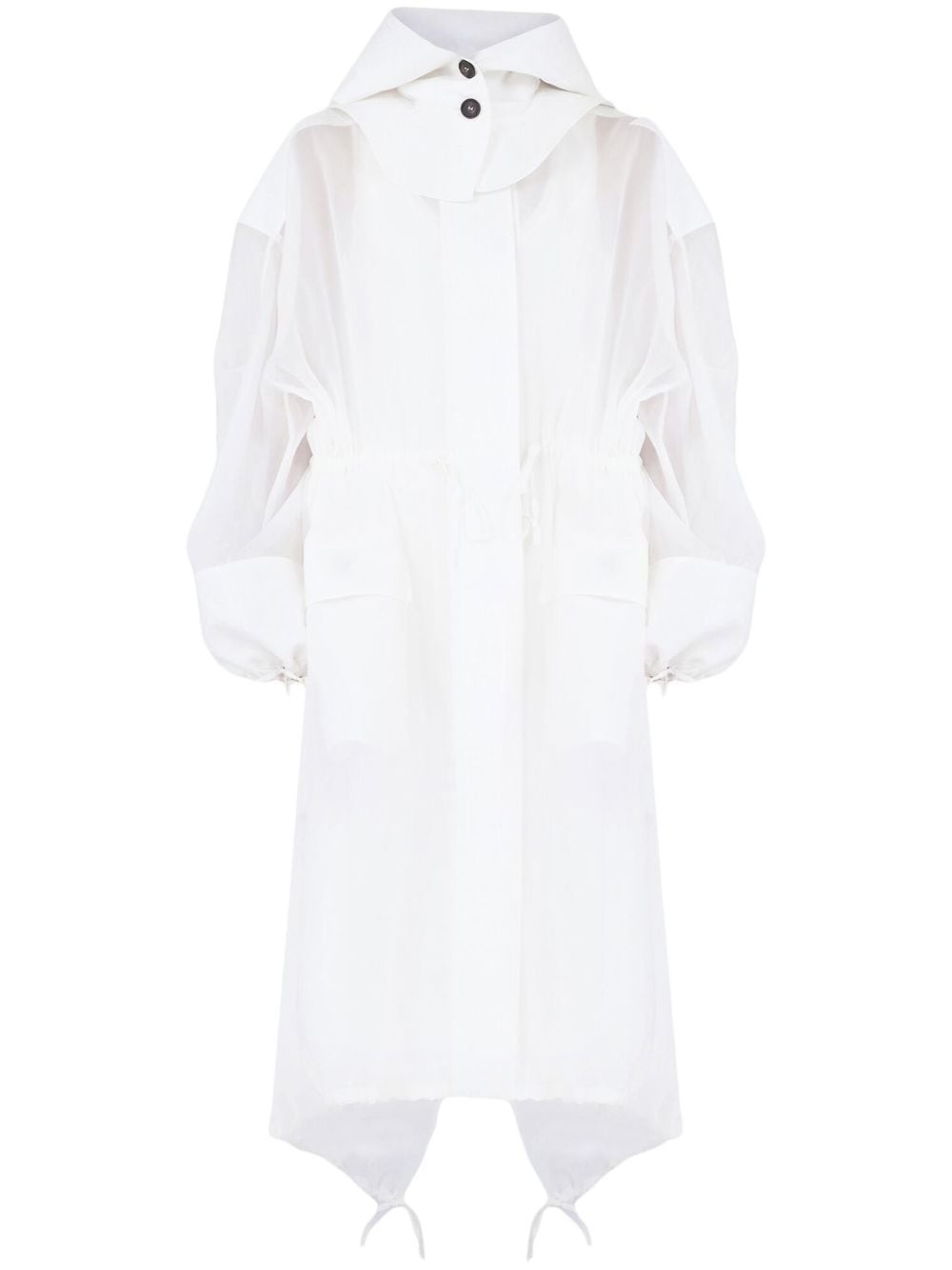 unlined organza trench white silk-cotton blend organza unlined front button fastening elasticated waistband elasticated cuffs long sleeves Made in Italy Composition Outer: Silk 71%, Nylon 29% Lining: Cotton 100%
