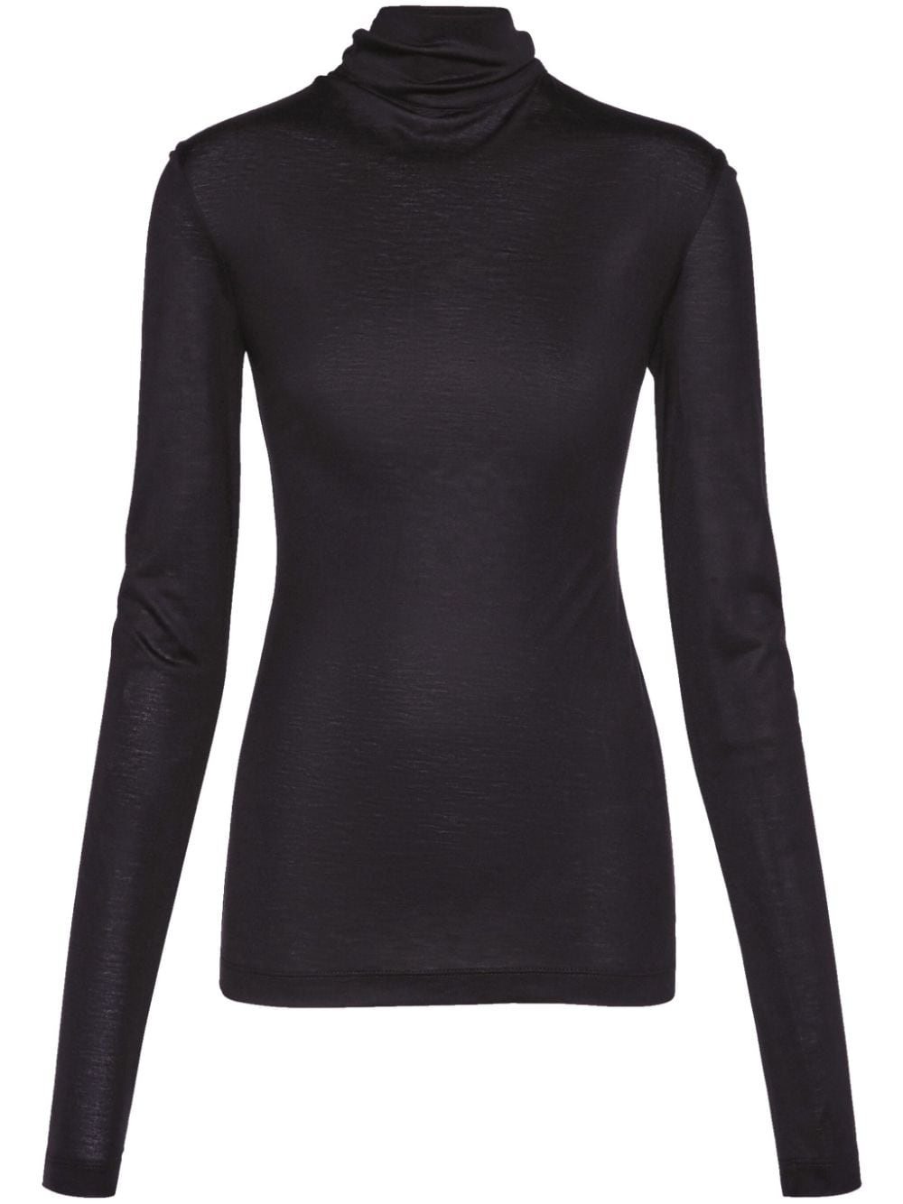 V-back silk-blend top Highlights - Black - Silk blend - High neck - V-back - Rear tie fastening - Long sleeves - Straight hem Made in Italy Composition Outer: Silk 50%, Rayon 50% Washing instructions Read Manufacturer Guidelines