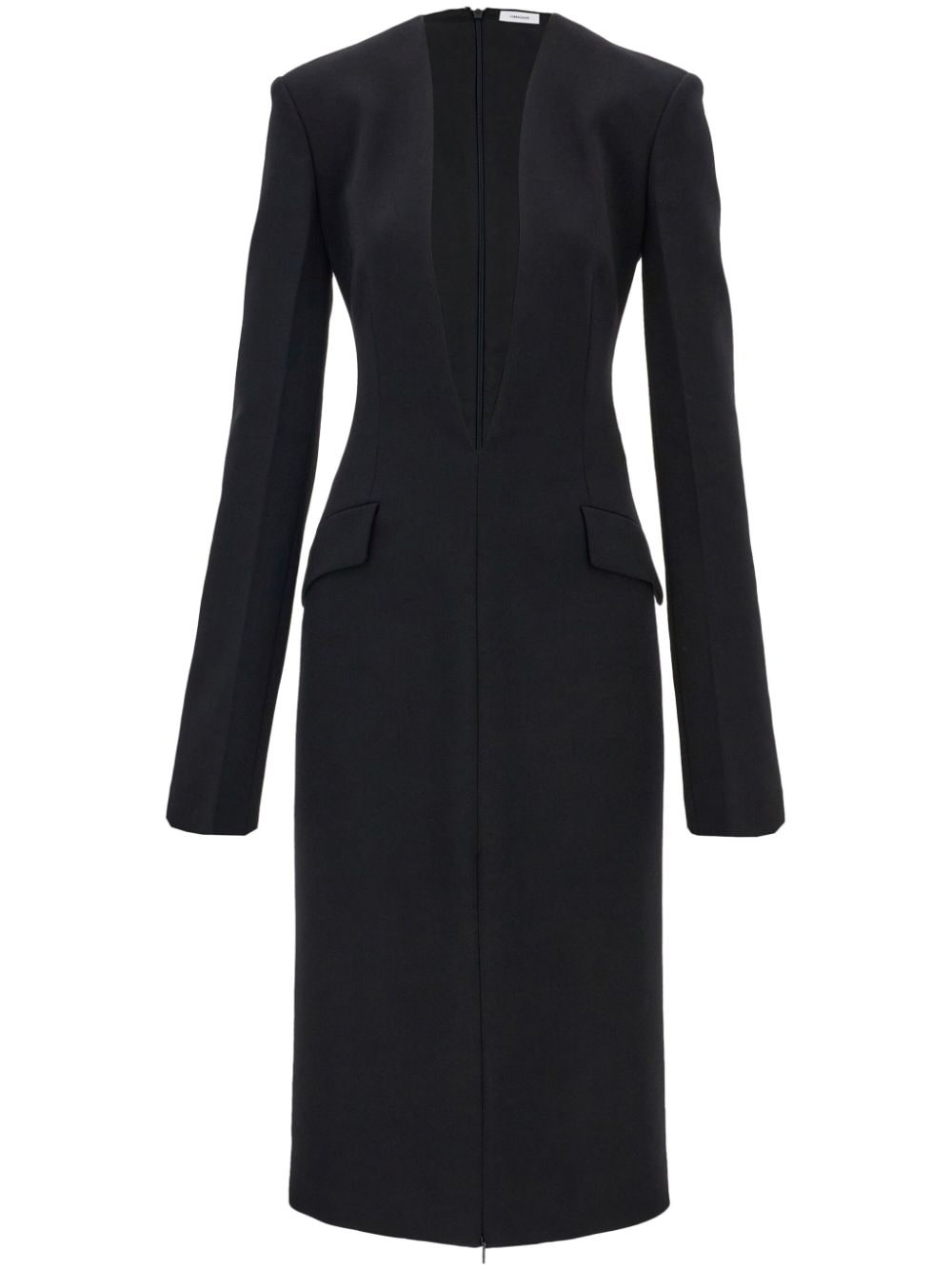 V-neck wool dress This midi dress from Salvatore Ferragamo is spun from virgin wool in a sophisticated tailored silhouette. Its plunging v-neckline adds a contemporary touch to the piece. Highlights - Black - Virgin wool - Rear zip fastening - Plunging v-neck - Faux pocket detail - Long sleeves - Straight hem - Knee-length Made in Italy Composition Outer: Virgin Wool 100% Lining: Viscose 60%, Polyester 40%