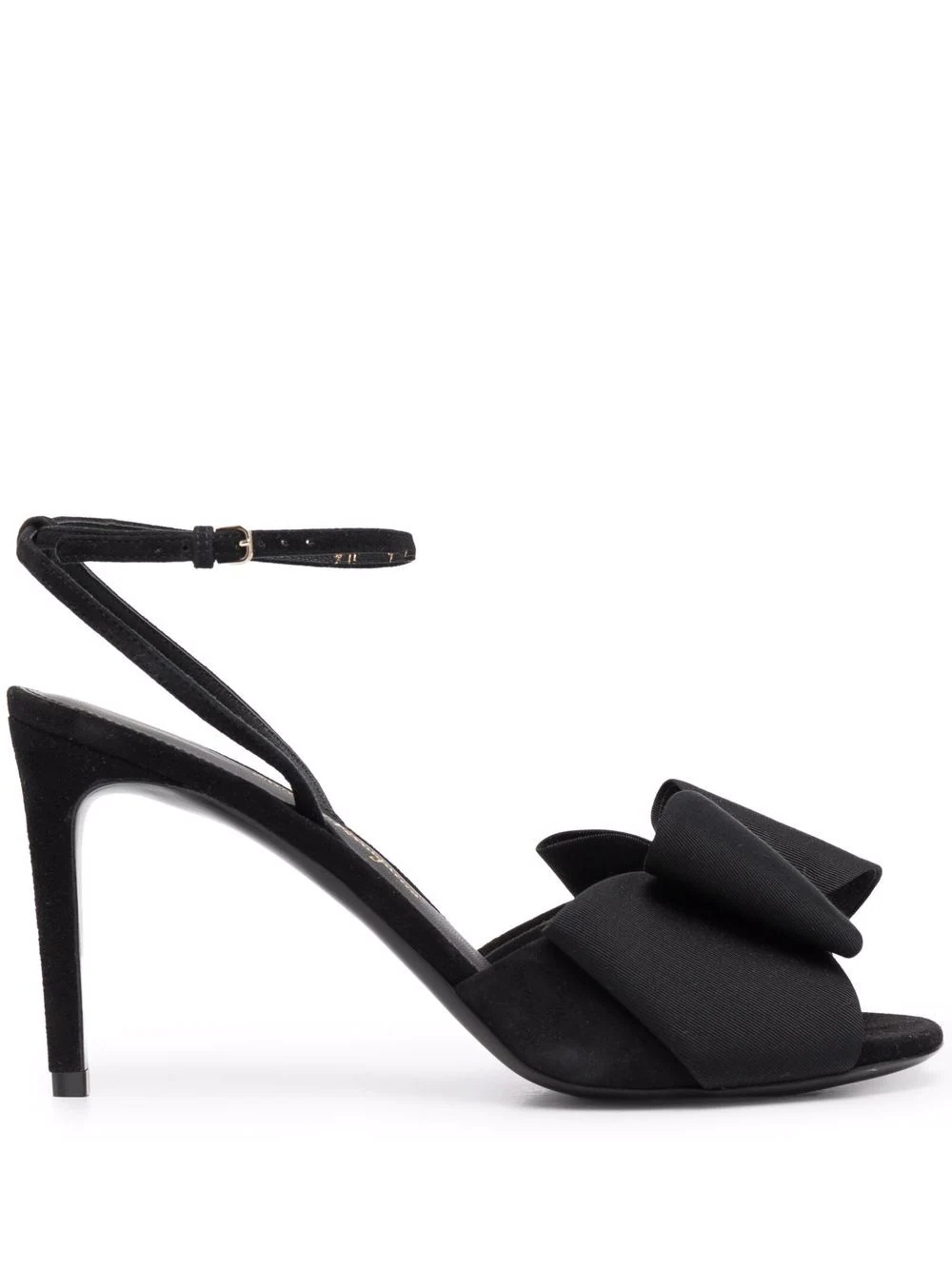 95mm Vara-bow detail sandals Black kid leather/leather Vara-bow detail sandals from Ferragamo. Highlights - Black - Kid leather/leather - Signature vara bow detail - Buckle-fastening ankle strap - Open toe - Branded insole - High heel Made in Italy Composition Outer: Kid Leather 100%, Fabric 100% Lining: Calf Leather 100% Sole: Calf Leather 100% SIZE & FIT Measurement HEEL 3.74 in(9.5 cm) Sole height 0.39 in(1 cm)