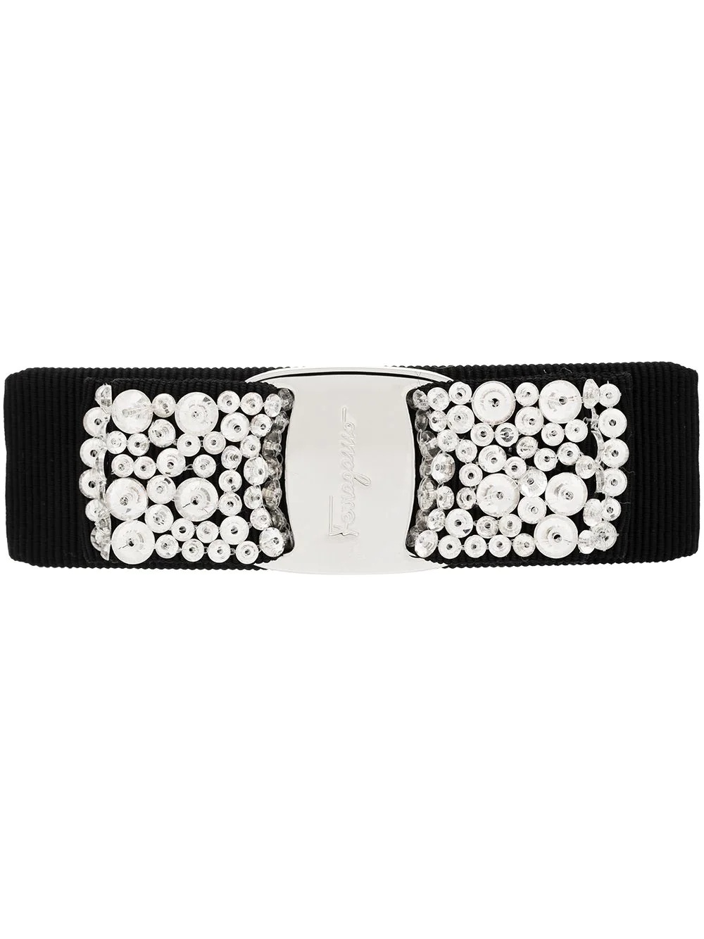 Vara crystal-embellished hair pin This season, Salvatore Ferragamo’s house signatures and most-favoured styles are given a high-octane revamp with bold colour schemes, vivid prints and exaggerated details. Still family-owned and expertly manufactured in Italy, the brand does not falter on quality or luxury 90 years later and offers luxe inspired accessories like this black crystal Vara bow hairclip. Made in Italy Composition Cotton 30%, Rayon 30%, Brass 20%, Polylactic Acid (PLA) 15%, Crystal 5% SIZE & FIT Model measurements Height 5 ft 9 in(1.75 m) Bust/Chest 33.46 in(85 cm) Hips 36.61 in(93 cm) Waist 27.55 in(70 cm)