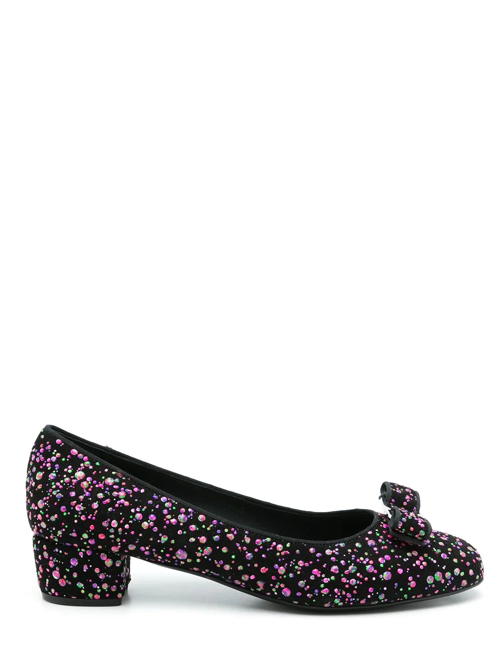 Vara sequin-embellished pumps black/purple goat suede slip-on style sequin embellishment round toe branded leather insole low block heel Made in Italy Composition Outer: Goat Skin 100%, Leather 100% Lining: Leather 100% SIZE & FIT FittingInformation This piece fits true to size. We recommend you get your regular size This piece has a wide fit. For those with a narrow foot, get the next size down Measurement HEEL 1.18 in(3 cm) HEIGHT 2.55 in(6.5 cm) Inside Sole 10.23 in(26 cm)