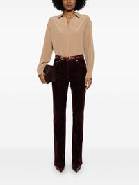 velvet trousers Highlights - Burgundy - Front button and zip fastening - Classic five pockets Made in Italy Composition Outer: Cotton 51%, Viscose 25%, Acrylic 23%, Elastane 1% Lining: Cotton 100% SIZE & FIT Model measurements Height 5 ft 11 in(1.8 m) Bust/Chest 32.67 in(83 cm) Hips 35.82 in(91 cm) Waist 25.98 in(66 cm) FittingInformation Designed for a straight-leg fit, these trousers allow for a close fit at the waist and an unrestricted, comfortable fit over the leg Made from a midweight stretch fabric, this piece offers elasticity and flexibility when worn