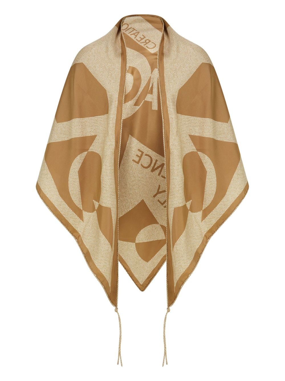 Venna graphic-print triangle scarf Highlights - Beige - Graphic design - Tassel detailing - Draped styling - Logo lettering Made in Italy Composition Silk 100% SIZE & FIT Measurement LENGTH 51.18 in(130 cm) WIDTH 51.18 in(130 cm) Washing instructions Read Manufacturer Guidelines
