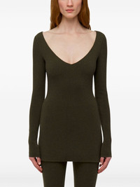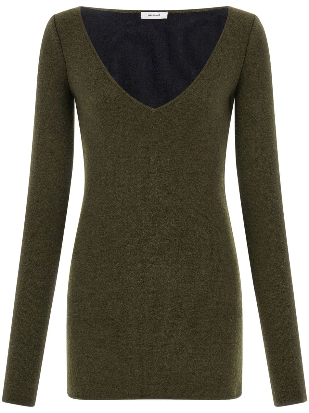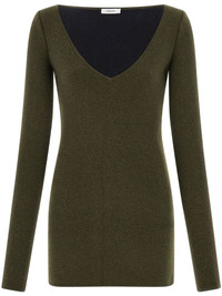 virgin wool-blend knitted dress Highlights - Olive green - Virgin wool blend - Knitted construction - Logo patch to the rear - Sweetheart neck - Long sleeves - Thigh-length Made in Italy Composition Outer: Virgin Wool 53%, Viscose 28%, Polyamide 19%