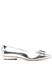 Viva bow ballerina shoes There's no mistaking the Viva bow found across each footwear collection from Salvatore Ferragamo. Add the iconic detail to your repertoire with these metallic silver-tone Viva ballerina shoes. Made in Italy Composition Lining: Leather 100% Sole: Leather 100% Outer: Leather 100% SIZE & FIT Measurement HEEL 0.78 in(2 cm) HEIGHT 2.36 in(6 cm) Inside Sole 10.03 in(25.5 cm)