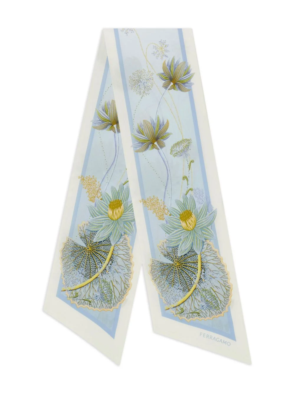 Water Lily printed silk scarf Highlights - Light blue - Silk - Water lily print - This piece can be styled in multiple ways. Made in Italy Composition Silk 100% SIZE & FIT Measurement LENGTH 62.99 in(160 cm) WIDTH 7.87 in(20 cm)