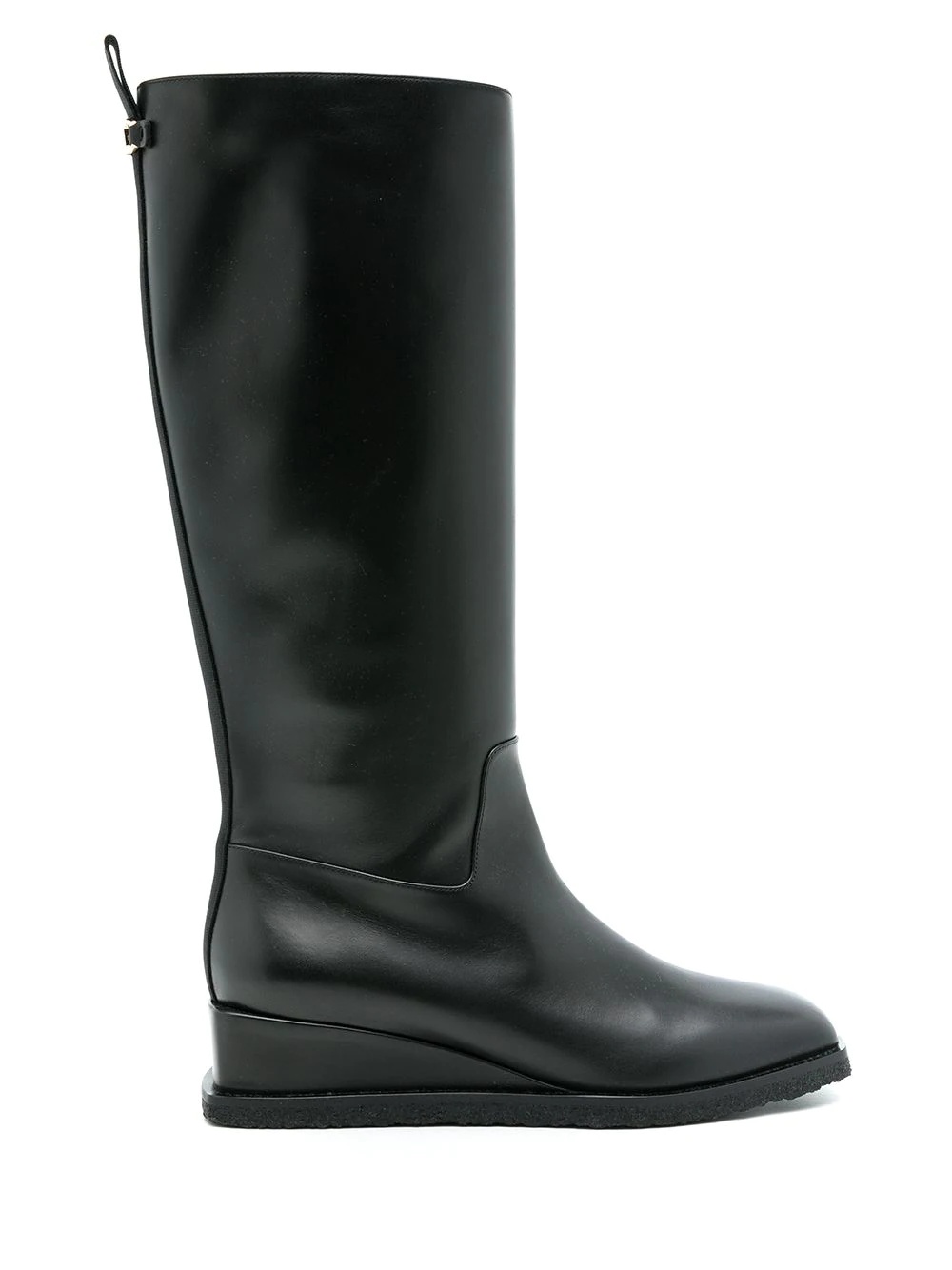 Wayde leather wedge boots black calf leather mid wedge heel calf-length Made in Italy Composition Calf Leather 100% SIZE & FIT Measurement HEEL 1.77 in(4.5 cm) HEIGHT 14.96 in(38 cm) Inside Sole 10.82 in(27.5 cm) Sole height 0.59 in(1.5 cm)