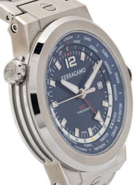 F-80 WorldTime 43mm Highlights - 43mm - Blue - Silver-tone - Stainless steel - Brushed finish - Quartz movement - Gmt display - Logo print to the front - Arrow hands - Sunray-patterned dial - World time zones - Day-date display - Screw-down crown - Adjustable link bracelet - Deployant-clasp fastening - Water resistance up to 100m/10 atm - This item comes with a standard one-year warranty from the brand. Imported Composition Sapphire Crystal 100%, stainless steel 100% SIZE & FIT Model measurements Height 6 ft 2 in(1.87 m) Bust/Chest 38.18 in(97 cm) Hips 36.61 in(93 cm) Waist 29.13 in(74 cm) Measurement CIRCUMFERENCE 8.74 in(22.2 cm) DIAMETER 1.57 in(4 cm) Thickness 0.39 in(1 cm) WIDTH 0.98 in(2.5 cm)