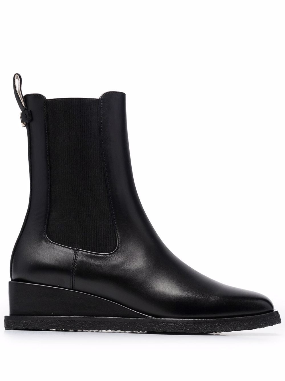 Wyatt ankle boots Since its founding in 1927, Salvatore Ferrgamo has exhibited its supreme leather craftsmanship through its shoes, bags and accessories. Crafted from smooth black leather, the silver-tone Gancini plaque that sits at the heel of these Wyatt ankle boots makes the pair instantly recognisable. Made in Italy Composition Outer: Leather 100% Lining: Leather 100% Sole: Rubber 100% SIZE & FIT Measurement HEEL 1.96 in(5 cm) HEIGHT 7.48 in(19 cm) Sole height 0.78 in(2 cm)