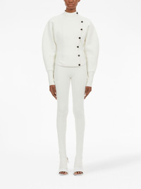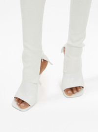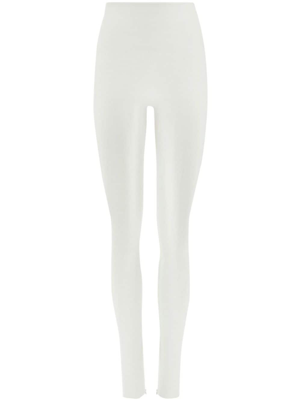 zip-detail knitted leggings Highlights - White - Virgin wool blend - Knitted construction - Short side zip fastening - Elasticated waistband - Long length Made in Italy Composition Outer: Virgin Wool 86%, Polyamide 12%, Elastane 2% SIZE & FIT Measurement FRONT RISE 11.02 in(28 cm) HIPS 28.34 in(72 cm) WAIST 25.98 in(66 cm)