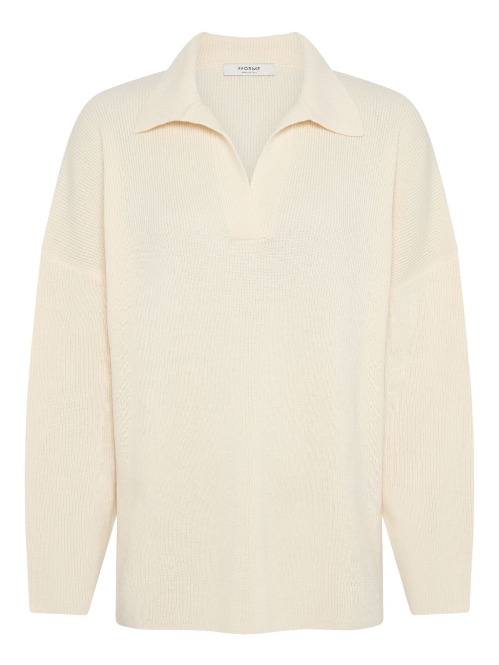Louise sweater Highlights - White - Polo collar - Long sleeves - Ribbed detailing Made in Italy Composition RWS Merino Wool 90%, Cashmere 10%