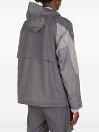 X Slam Jam panelled hooded jacket Highlights - Grey - Red accents - Hooded neckline - Zip fastening - Perforated detailing - Panelling design Imported Composition Polyamide 94%, Spandex/Elastane 6% Washing instructions Machine Wash