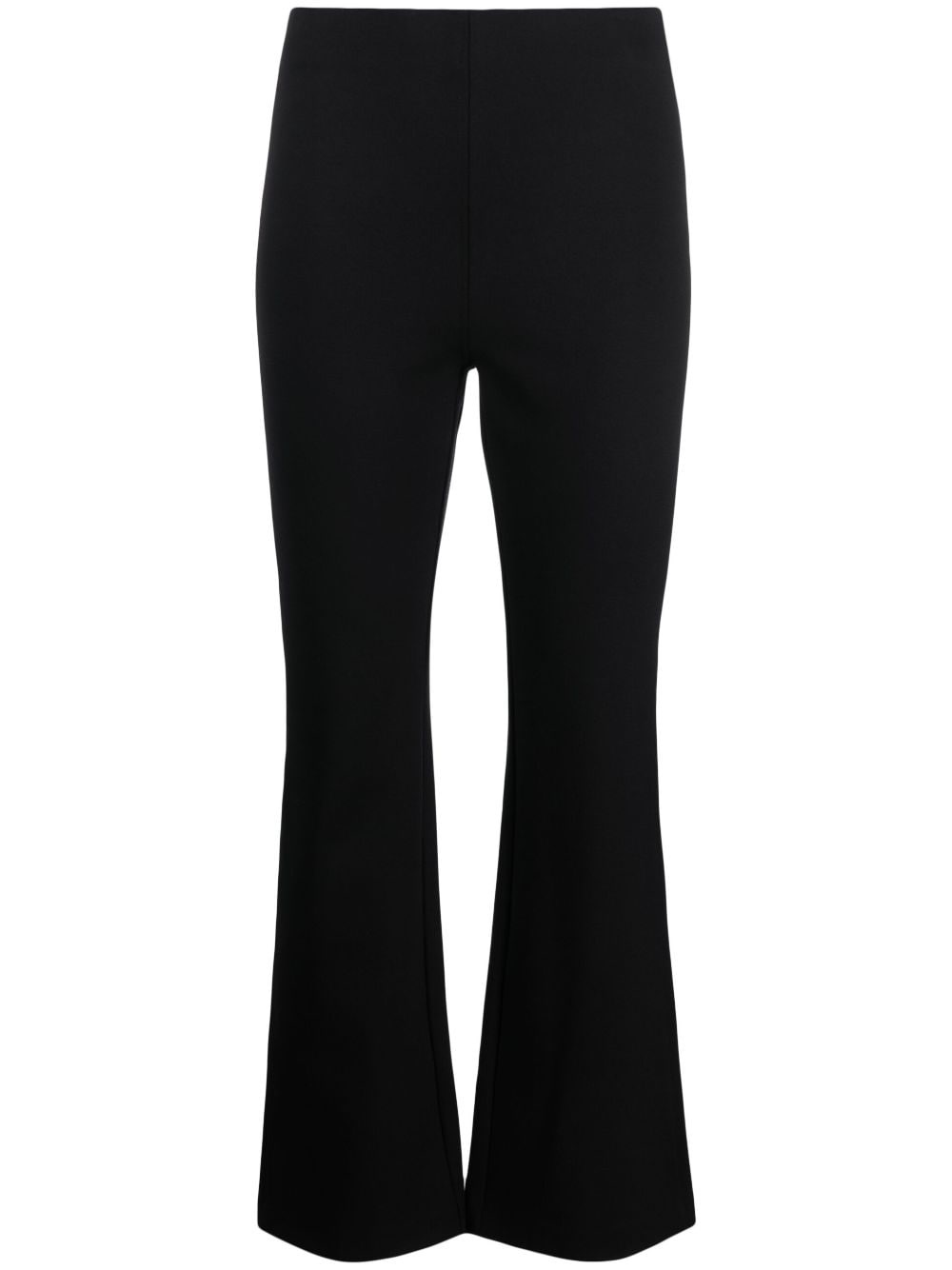flared jersey trousers Highlights - Black - Jersey knit - Stretch-design - Flared - Straight hem Imported Composition Viscose 65%, Polyamide 30%, Spandex/Elastane 5% SIZE & FIT Model measurements Height 5 ft 9 in(1.75 m) Bust/Chest 31.49 in(80 cm) Hips 34.05 in(86.5 cm) Waist 24.21 in(61.5 cm) FittingInformation Designed with a flared hem, these trousers allow for a close fit at the waist with a slim fit over the leg and widening towards the hem The elasticated waist allows for a comfortable fit Made from a midweight stretch fabric, this piece offers elasticity and flexibility when worn This piece fits true to size – take your usual size Washing instructions Hand Wash