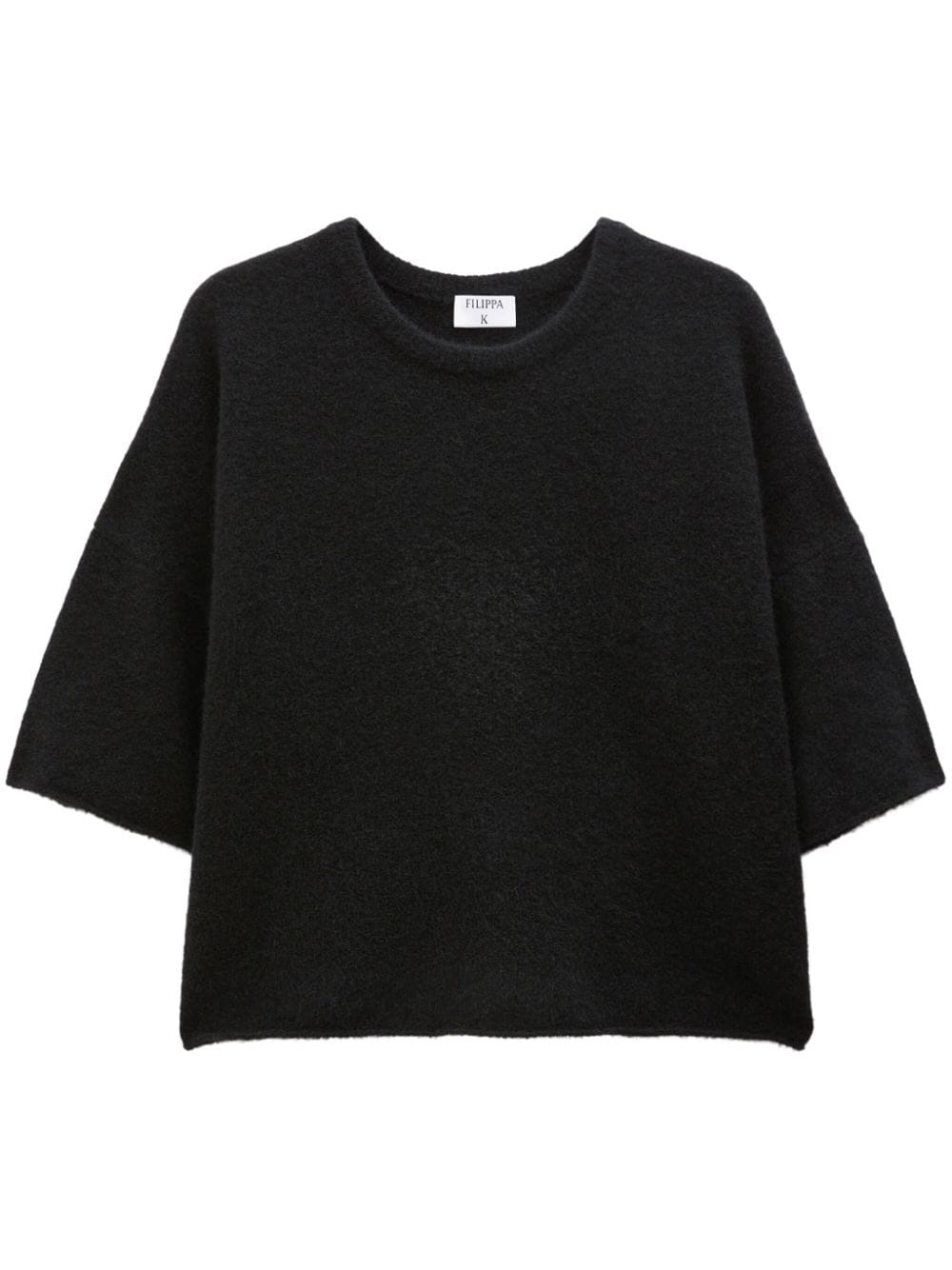 Yak knitted top Highlights - Black - Knitted construction - Drop shoulder - Crew neck - Short sleeves - Wide sleeves - Straight hem Imported Composition Wool 54%, Yak 22%, Polyamide 19%, Elastane 5% SIZE & FIT FittingInformation Designed to be unstructured, offering a loose fit throughout Made with a midweight knit, this piece offers some stretch
