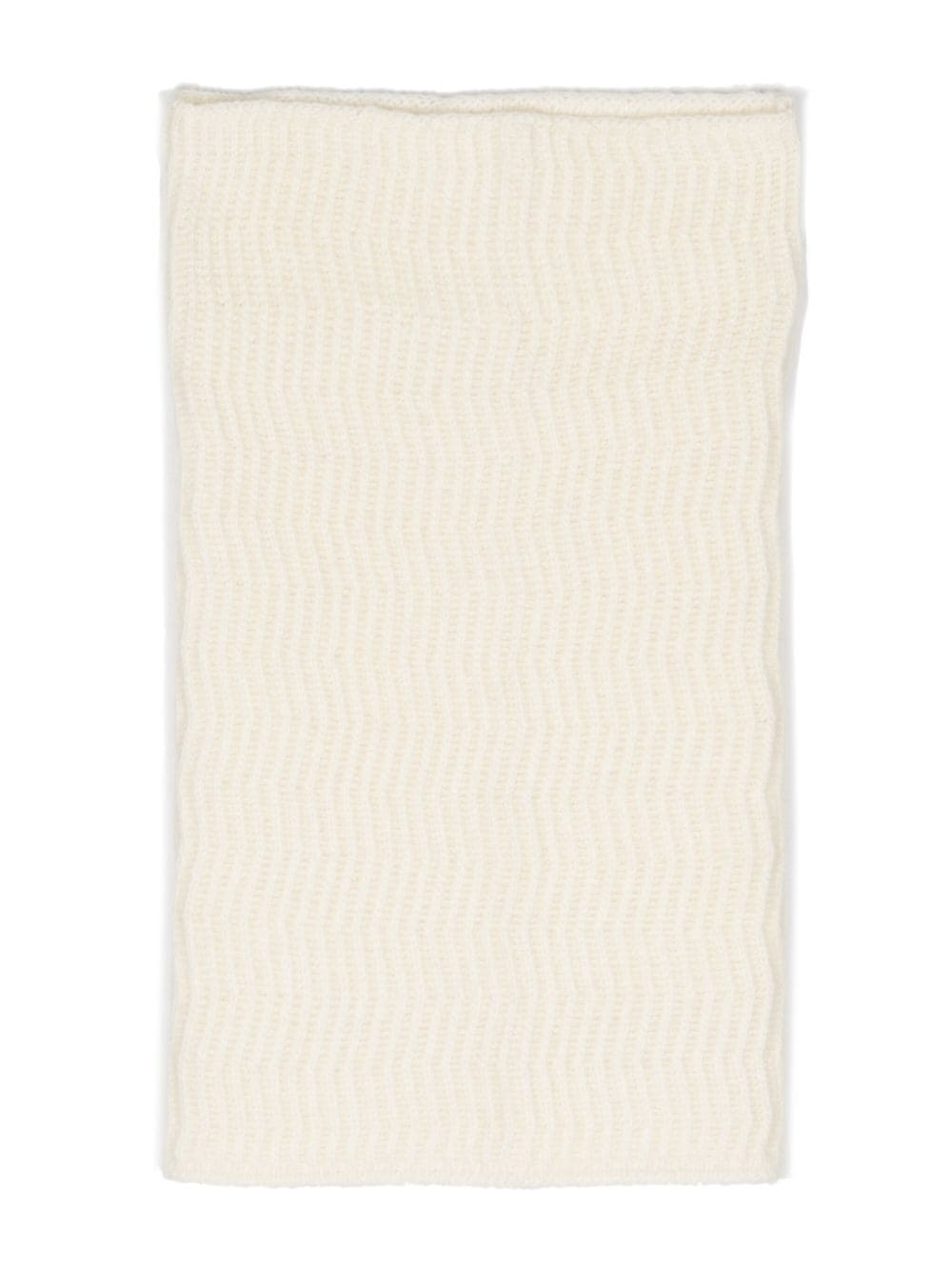 patterned-jacquard knitted scarf Highlights - Cream white - Alpaca wool-blend - Knitted construction - Patterned jacquard - Straight hem - Wraparound style Imported Composition Polyamide 44%, Alpaca Wool 34%, Wool 22% SIZE & FIT Measurement LENGTH 21.65 in(55 cm) WIDTH 13.77 in(35 cm) Washing instructions Hand Wash