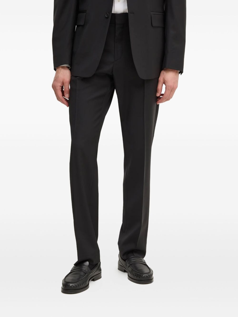 pressed-crease trousers Highlights - Black - Side pockets - Belt loops - Straight leg - Zip fly Imported Composition Wool 98%, Elastane 2% Washing instructions Read Manufacturer Guidelines