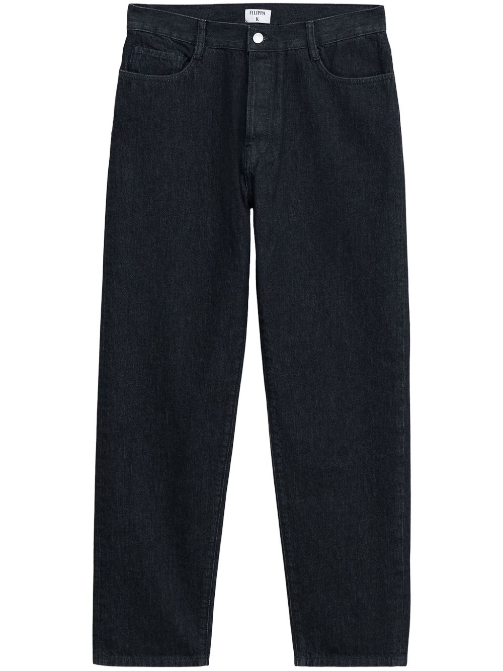tapered cropped jeans Highlights - Black - Organic cotton blend - Washed denim - Front button and zip fastening - Belt loops - Classic five pockets - Tapered leg - Logo patch to the rear - Cropped Imported Composition Organic Cotton 75%, Recycled Cotton 25%