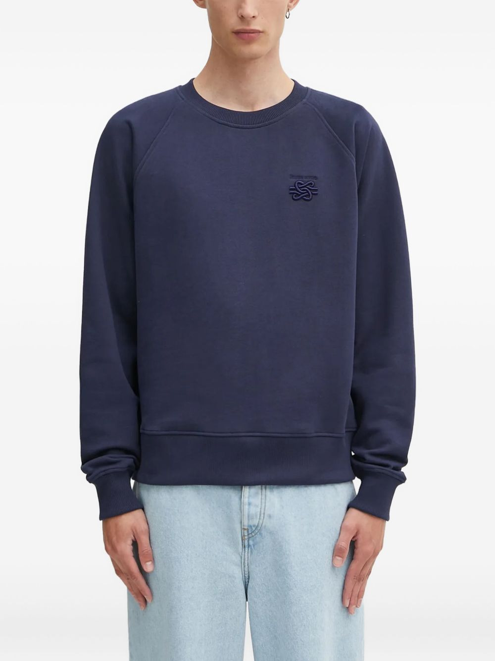 embroidered crewneck sweatshirt Highlights - Dark blue - Embroidered detail - Crew neck - Raglan sleeves - Ribbed hem - Ribbed cuffs Imported Composition Cotton 100%