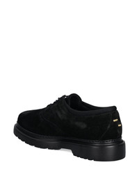 logo-print lace-up derby shoes Highlights - Black - Front lace-up fastening - Gold-tone logo lettering - Round toe - Rubber lug sole Imported Composition Sole: Rubber 100% Lining: Fabric 100% Outer: Suede 100%