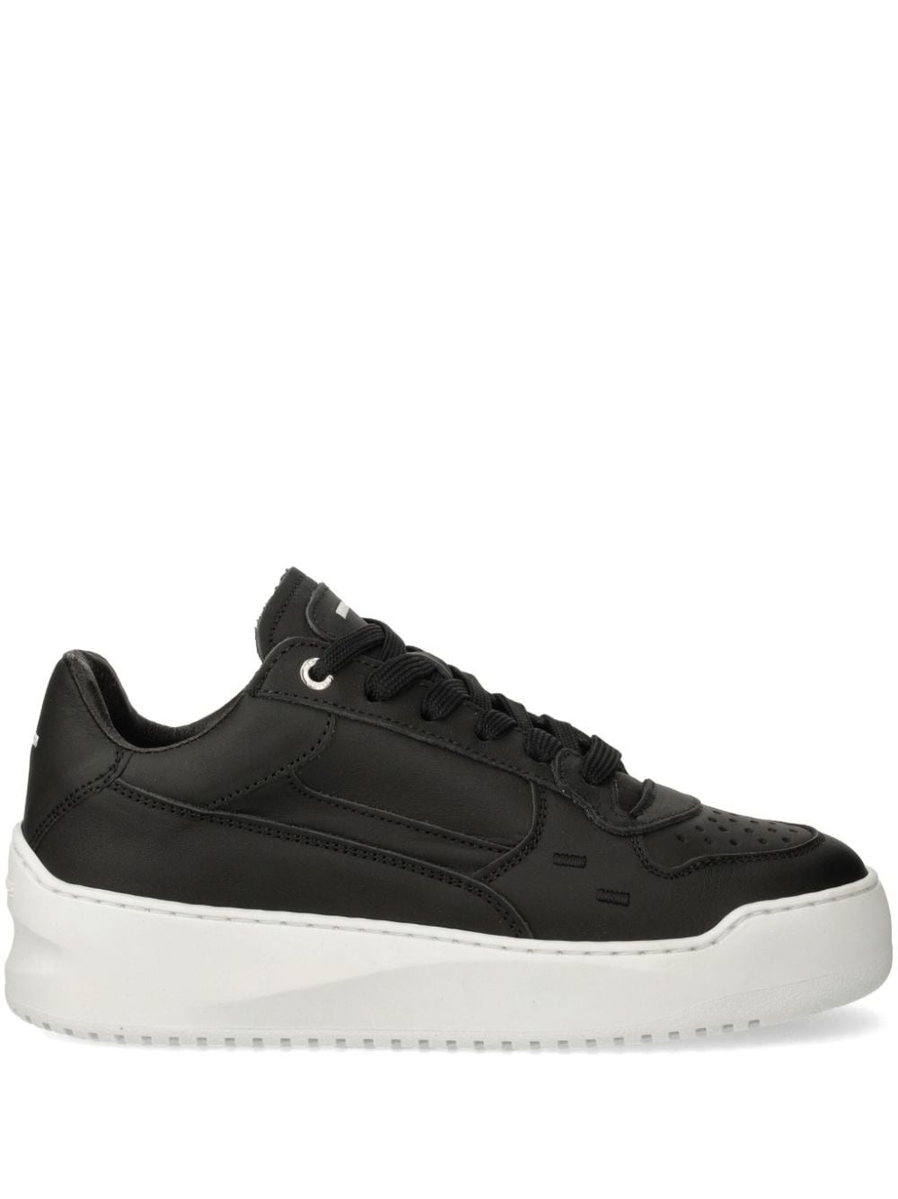 perforated-detailing trainers Highlights - Black - Calf leather - Panelled design - Front lace-up fastening - Perforated design - Round toe - Rubber sole Imported Composition Leather 100%