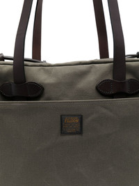 rugged twill tote bag Highlights - Olive green - Top zip fastening - Two flat top handles - Slip pocket to the front - Slip pocket to the rear Made in Italy Composition Outer: Cotton 100%, Calf Leather 100% SIZE & FIT Model measurements Height 6 ft 2 in(1.87 m) Bust/Chest 37 in(94 cm) Hips 33.85 in(86 cm) Waist 27.95 in(71 cm) Measurement DEPTH 5.9 in(15 cm) HEIGHT 13.38 in(34 cm) STRAP 13.38 in(34 cm) WIDTH 14.96 in(38 cm)