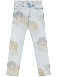 Angel-print mid-rise straight jeans Highlights - Light blue - Organic cotton - Washed denim - All-over graphic print - Logo patch to the rear - Mid-rise - Front button and zip fastening - Straight leg - Classic five pockets - Straight hem Made in Italy Composition Organic Cotton 100%