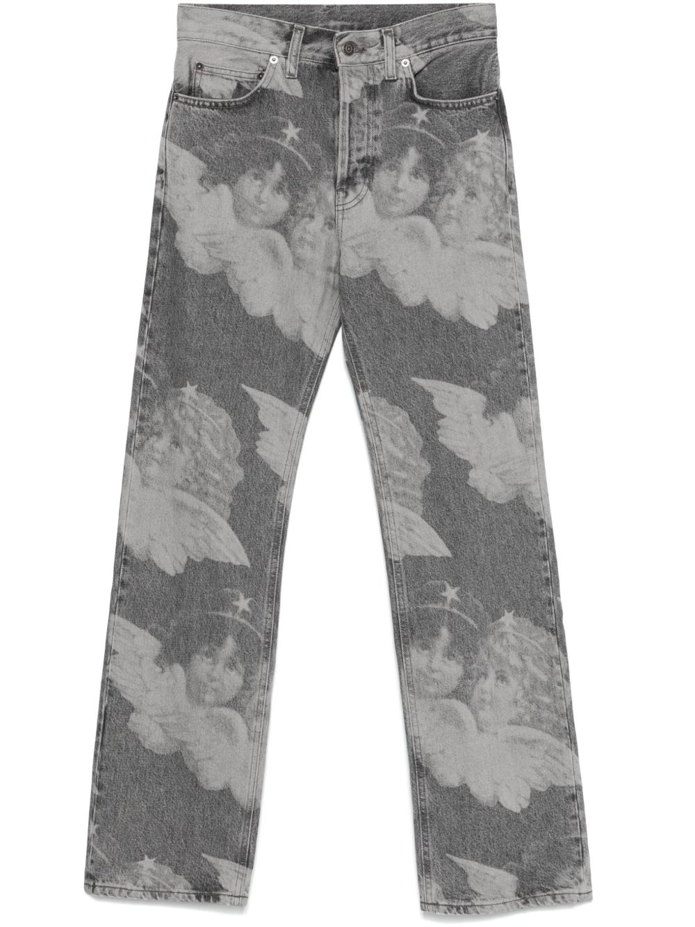 angels-print straight-leg jeans Highlights - Medium grey - Button fly fastening - Classic five pockets - Belted waist tabs - When buying this unisex item, keep in mind that it is graded in standard men's sizing. Made in Italy Composition Cotton 100%