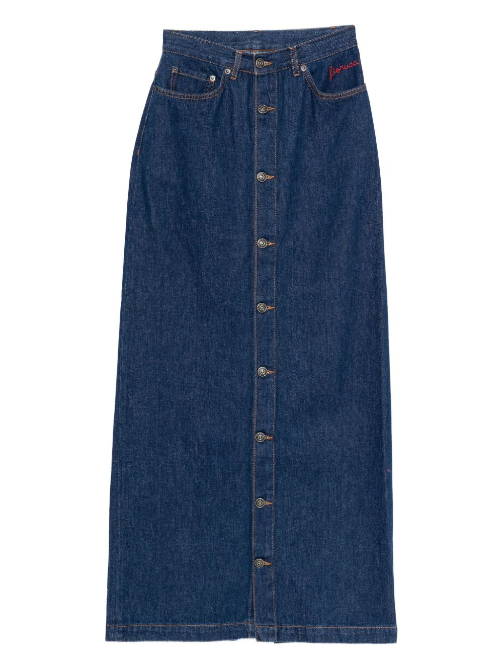 button-front denim skirt Highlights - Blue - Denim - Front button fastening - Embroidered logo - High waist Made in Italy Composition Cotton 100% SIZE & FIT Model measurements Height 5 ft 9 in(1.76 m) Bust/Chest 32.28 in(82 cm) Hips 35.43 in(90 cm) Waist 25.19 in(64 cm) Washing instructions Machine Wash