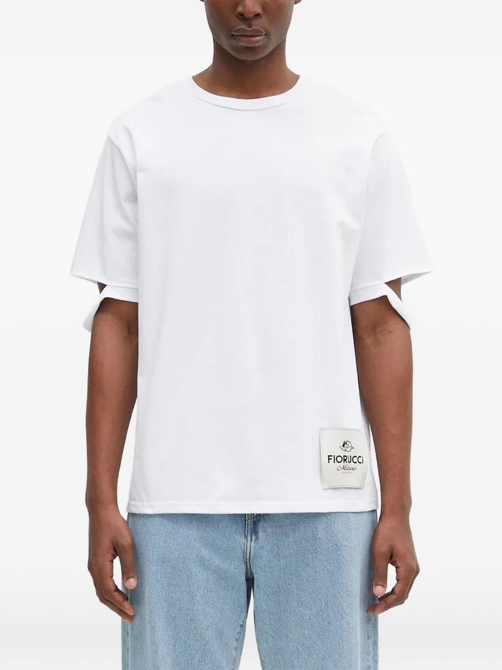 distressed-hem logo-patch T-shirt Highlights - White - Short sleeves - Distressed hem - Crew neck - Logo patch Made in Italy Composition Cotton 100% Washing instructions Read Manufacturer Guidelines