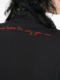 double-breasted embroidered blazer Highlights - Black - Double-breasted button fastening - Embroidered logo - Long sleeves - Welt pockets - Peak lapels - Straight hem Imported Composition Outer: Wool 100% Lining: Viscose 50%, Acetate 50% Washing instructions Read Manufacturer Guidelines