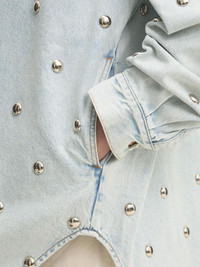 studded denim shirt Highlights - Blue - Front button fastening - Stud embellishment - Long sleeves - Buttoned cuffs Made in United Kingdom Composition Cotton 100% Washing instructions Read Manufacturer Guidelines