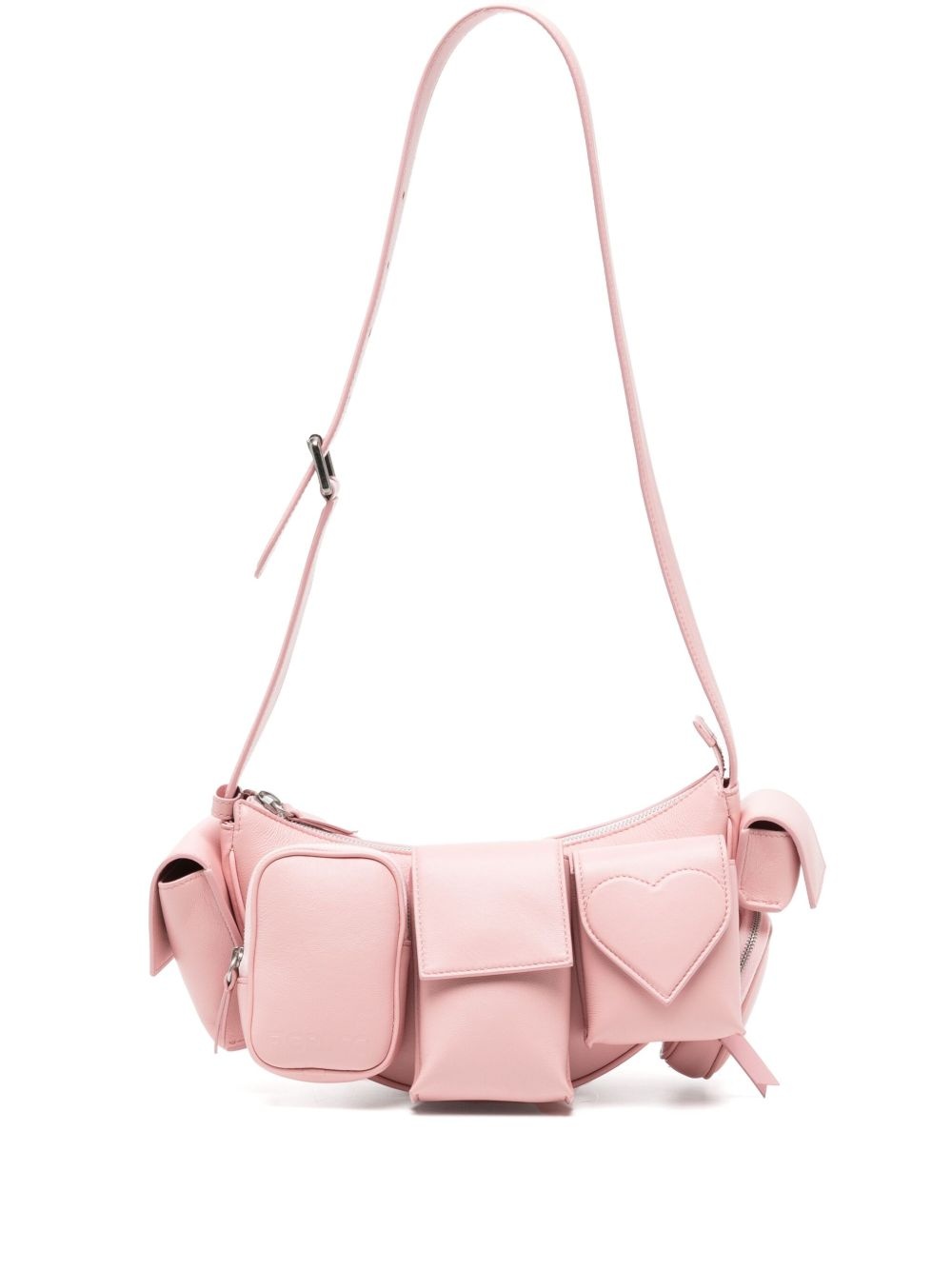 super pocket leather bag Highlights - Pink - Lamb skin - Smooth grain - Zip fastening - Debossed logo to the front - Multiple patch pockets - Adjustable shoulder strap - Silver-tone hardware - Main compartment - Internal slip pocket Made in Italy Composition Lining: Cotton 100% Outer: Lamb Skin 100% SIZE & FIT Measurement DEPTH 4.72 in(12 cm) HEIGHT 5.51 in(14 cm) STRAP 16.53 in(42 cm) WIDTH 11.81 in(30 cm)