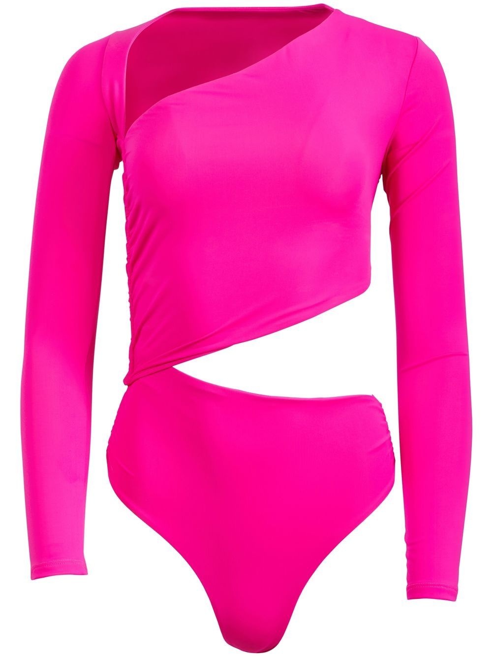 asymmetric wrapstyle bodysuit Highlights - Fuchsia pink - Cotton blend - Cut-out detailing - Wraparound style - Asymmetric design - Long sleeves - Just a reminder that this piece must be tried on over your own garments. Imported Composition Lining: Cotton 100% Outer: Polyamide 78%, Elastane 22%