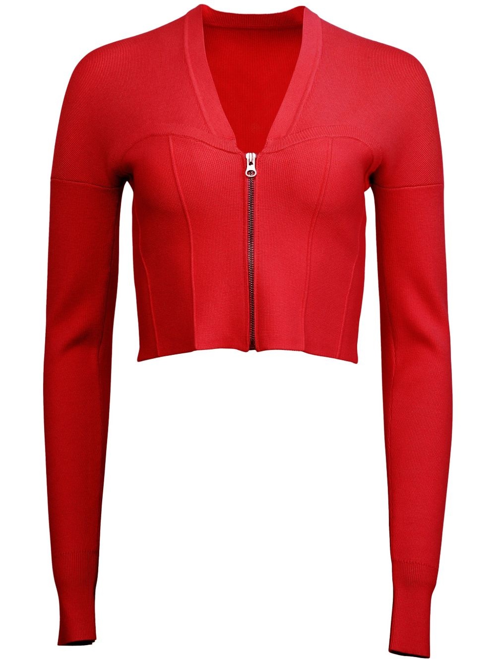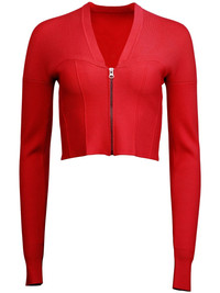 Bustier cardigan Highlights - Bright red - Front zip fastening - V-neck - Long sleeves - Cropped Imported Composition Viscose 72%, Polyester 28%