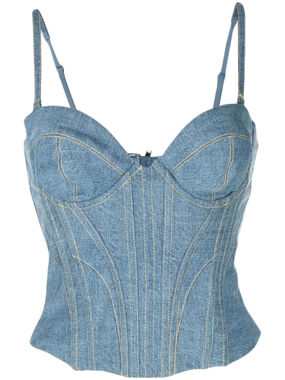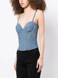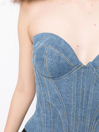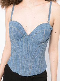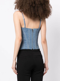 denim bustier top Highlights - Light blue - Cotton - Light wash - Contrast stitching - Sweetheart neck - Rear zip fastening - Spaghetti straps - Straight hem Imported Composition Cotton 100% SIZE & FIT Model measurements Height 5 ft 10 in(1.78 m) Bust/Chest 33.46 in(85 cm) Hips 35.43 in(90 cm) Waist 24.4 in(62 cm) FittingInformation This piece fits true to size. We recommend you get your regular size Cut for a close fit Made with a mid-weight fabric Washing instructions Hand Wash