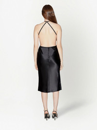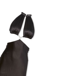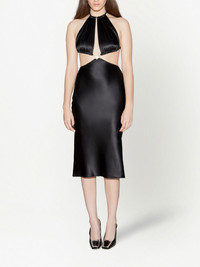 crystal cut-out dress black silk blend satin finish halterneck cut-out detailing crystal embellishment backless mid-length Imported Composition Silk 92%, Spandex/Elastane 8%