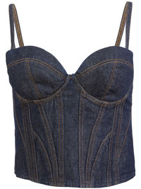 denim bustier top Highlights - Blue - Cotton - Denim - Bustier-style neckline - Spaghetti straps - Sweetheart neck - Rear zip fastening - Sleeveless - Curved hem Imported Composition Cotton 100%