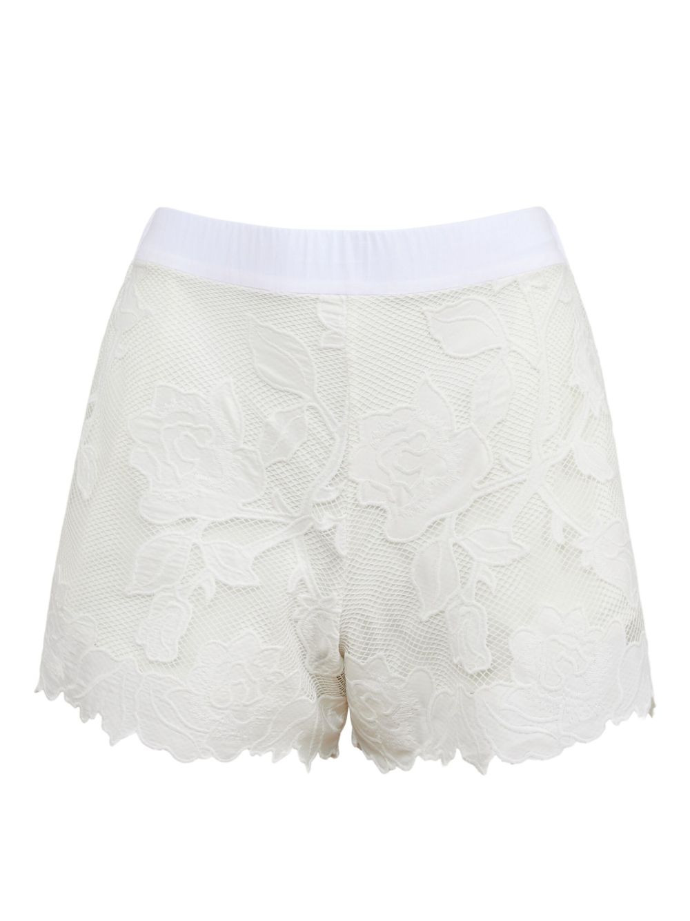 floral-motif shorts Highlights - White - Elasticated waistband - Mesh panelling - Floral applique Imported Composition Cotton 100%, Nylon 50%, Polyester 50% Washing instructions Hand Wash