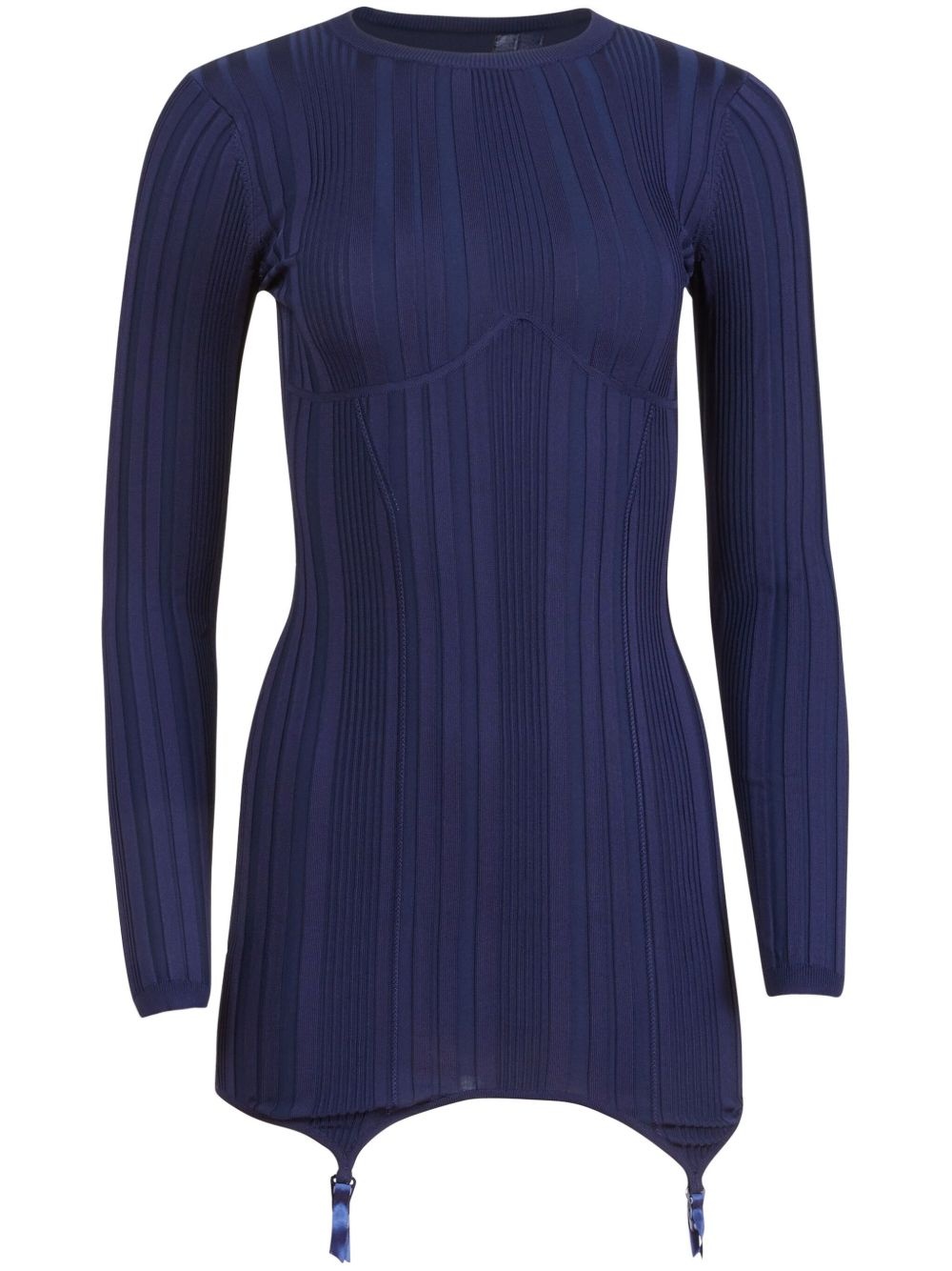Garter mini dress Highlights - Navy blue - Round neck - Long sleeves Imported Composition Viscose 68%, Nylon 32%