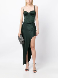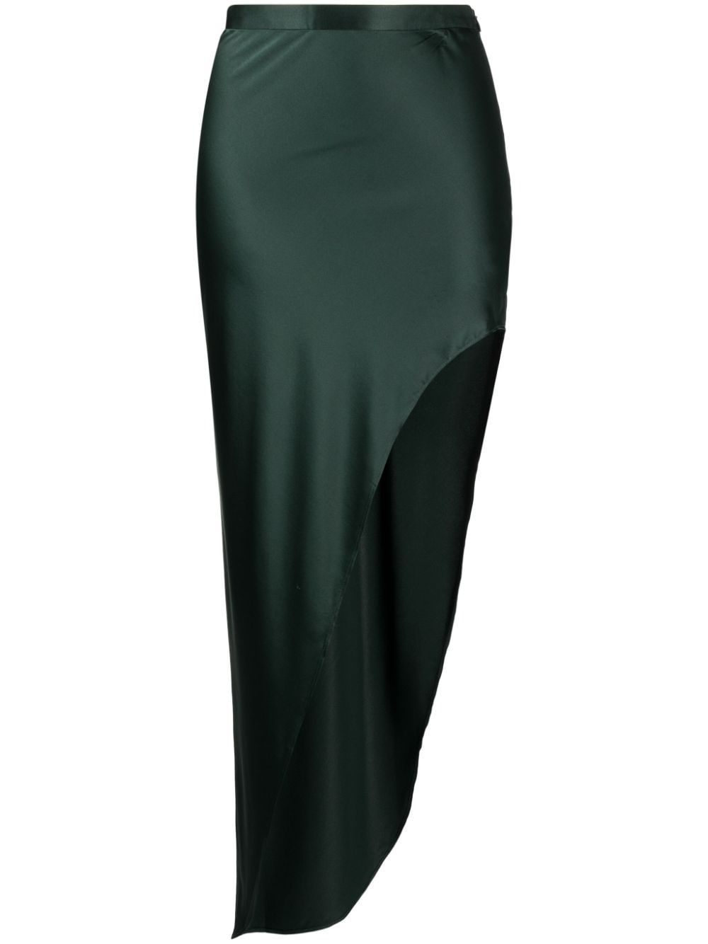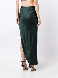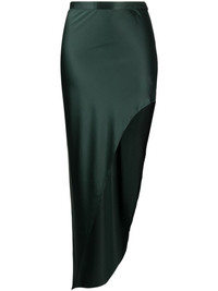 high-slit skirt Highlights - Dark green - Stretch-silk - High waist - Side slit - Side zip fastening - Asymmetric hem - Mid-length Imported Composition Silk 92%, Elastane 8% SIZE & FIT Model measurements Height 5 ft 9 in(1.76 m) Bust/Chest 31.1 in(79 cm) Hips 35.03 in(89 cm) Waist 24.4 in(62 cm) FittingInformation Designed with an asymmetric hem, this skirt is intended to be worn high on the waist Made from a lightweight non-stretch fabric This piece fits true to size – take your usual size