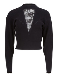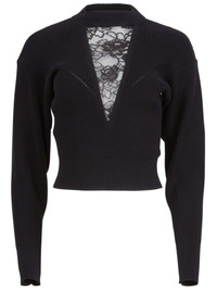 lace-insert cropped sweater Highlights - Black - Deep v-neck - Lace insert detailing - Ribbed texture - Long sleeves - Fitted silhouette - Front button closure - Slightly cropped length Imported Composition Cotton 84%, Nylon 16%