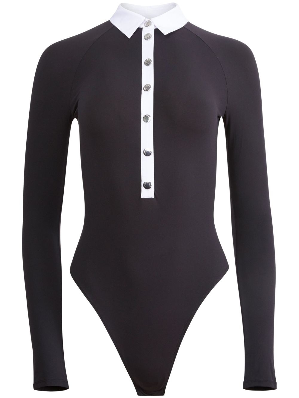 long-sleeved bodysuit Highlights - Black - Front press-stud fastening - Classic collar - Two-tone design - Stretch-design - Just a reminder that this piece must be tried on over your own garments. Imported Composition Polyamide 74%, Elastane 26%