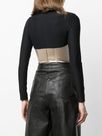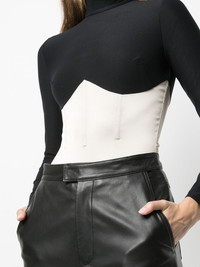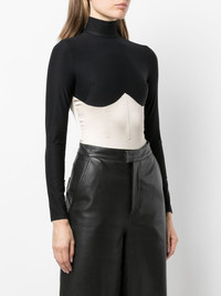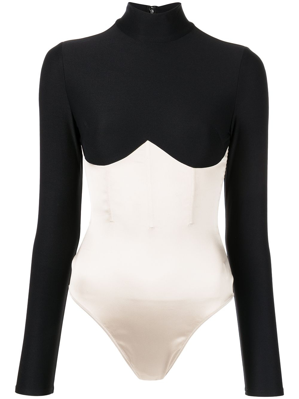 mock neck long-sleeve bodysuit black/cream stretch-cotton two-tone design mock neck rear zip fastening long sleeves Imported Composition Lining: Cotton 100% Body: Polyamide 65%, Elastane 35% Trims: Acetate 76%, Polyamide 21%, Elastane 3% SIZE & FIT Model measurements Height 5 ft 10 in(1.77 m) Bust/Chest 33.85 in(86 cm) Hips 35.03 in(89 cm) Waist 24.01 in(61 cm)
